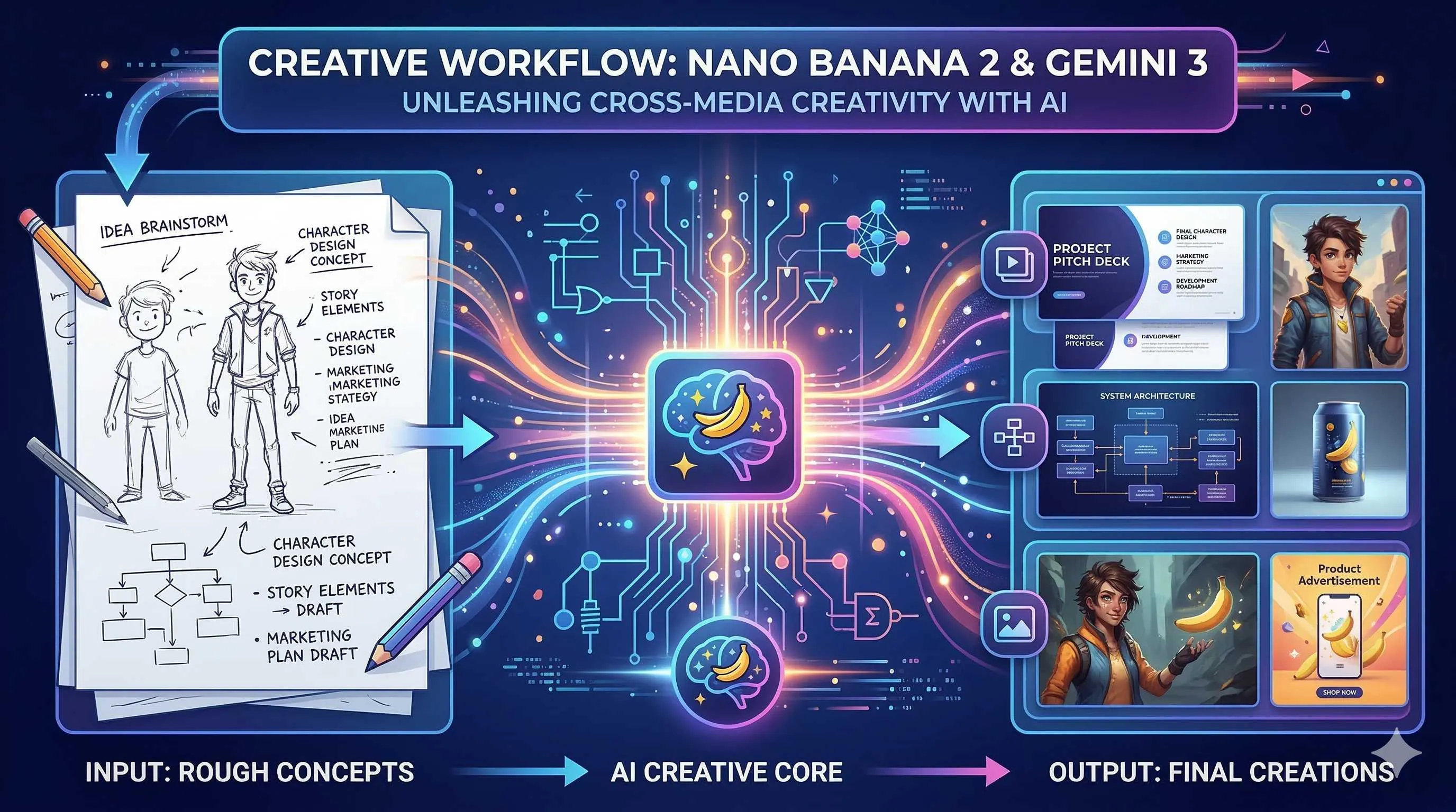 这篇东西,就是关于这种新工作流的——从草图到幻灯片,从文字到视觉,Nano Banana 2 和 Gemini 3 如何重构创作过程。