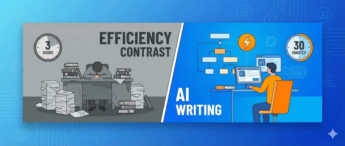 为什么能快这么多?因为AI帮你快速度过了”启动阶段”(不知道写什么)和”框架搭建”(不知道怎么组织),这两个环节往往占掉70%的时间。一旦有了方向和框架,写作就会变得顺畅很多。